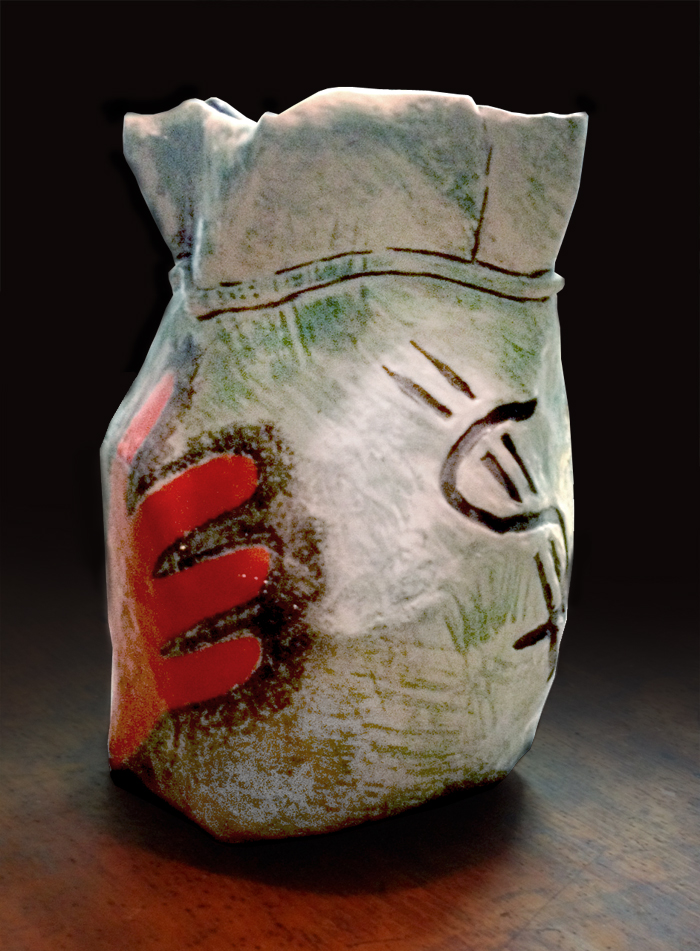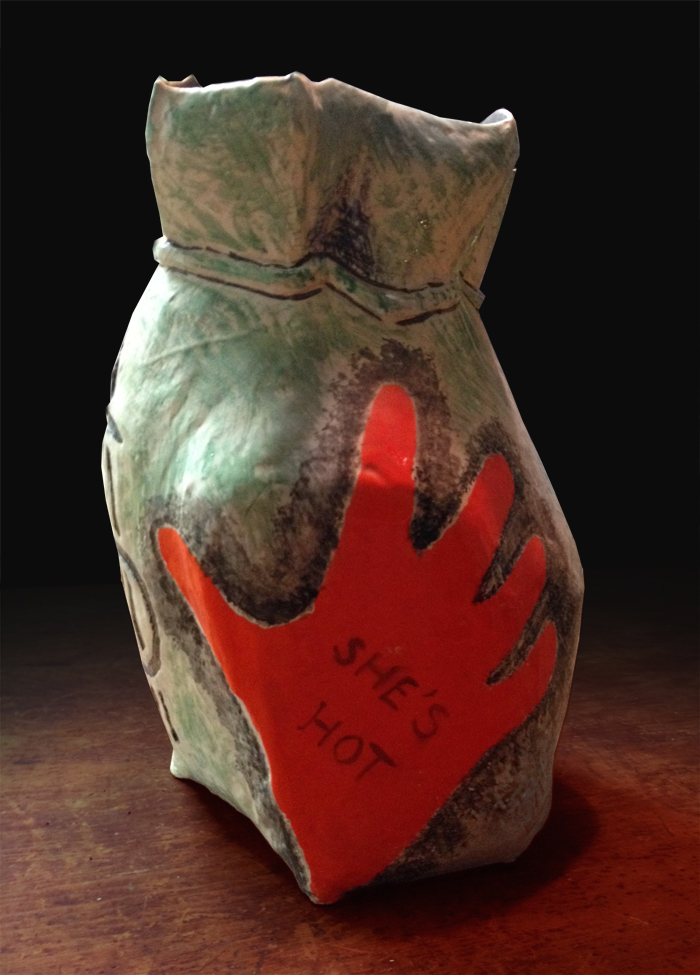 Rebecca Howland, Money Bag, hand painted ceramic pot, 1984