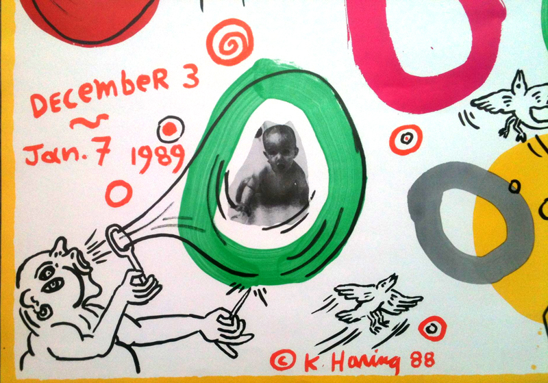 For this poster, made not long after his diagnosis with AIDS, Haring pasted his own baby picture inside an image of an about-to-burst soap bubble: a frank metaphor for the life that would be cut short barely a year later.