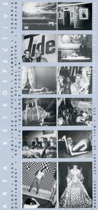 AREA Nightclub, AREA Retrospective Pictures from Past Events including Future, Confinement, Suburbia, 3-Fold Card, January 30, 1985