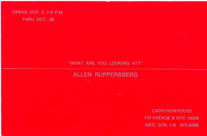 Postcard for Allen Ruppersberg’s “What Are You Looking At?” at Cash/NewHouse Gallery, circa mid 1980’s.