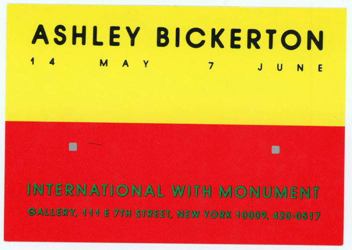 Card for Ashley Bickerton exhibit at International With Monument Gallery, c. 1987.