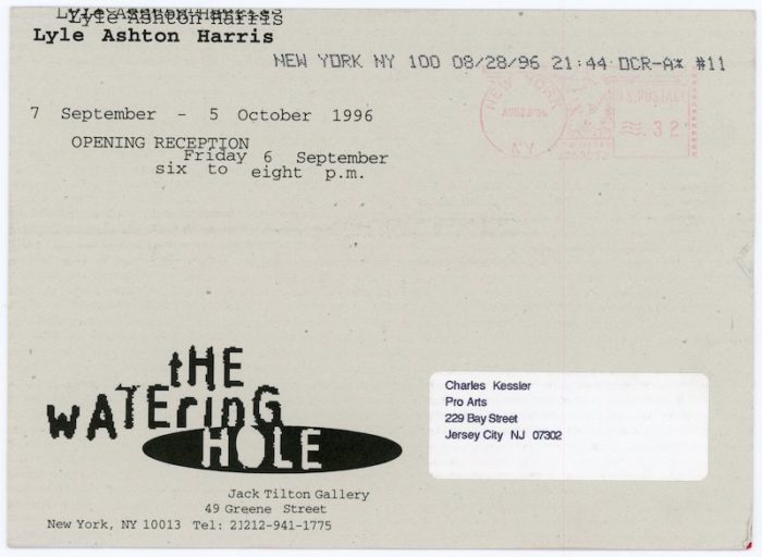 Invitation to The Watering Hole by Lyle Ashton Harris at the Jack Tilton Gallery, 1996.