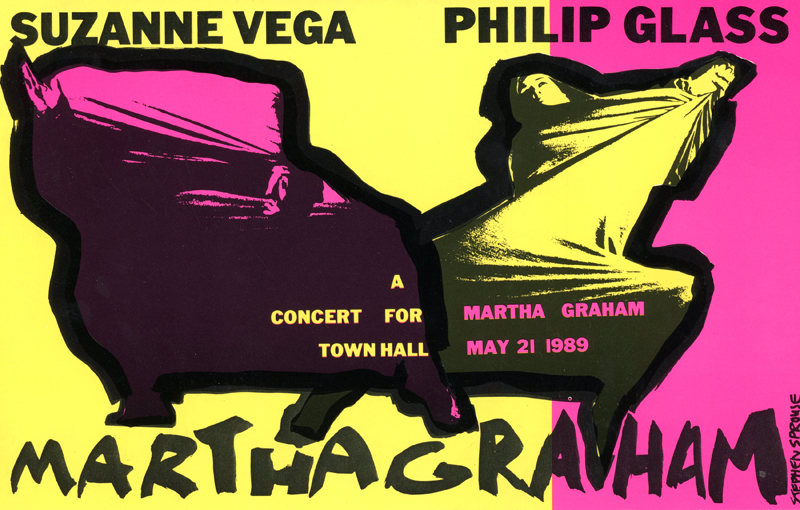 Folded mailer for The New Arts Program’s (Kutztown, PA) Benefit Concert & Reception with Philip Glass and Jon Gibson, 1988. Mailer unfolds several times to reveal event programming.