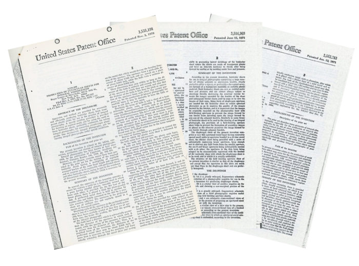 Photocopies of patents registered by Roger de Montebello, 1970-71