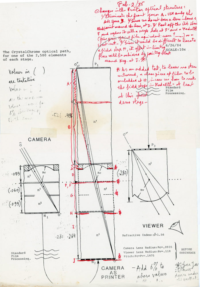 1984-1985, collection of drawings by de Montebello related to the creation and fabrication of the CrystalChrome camera.