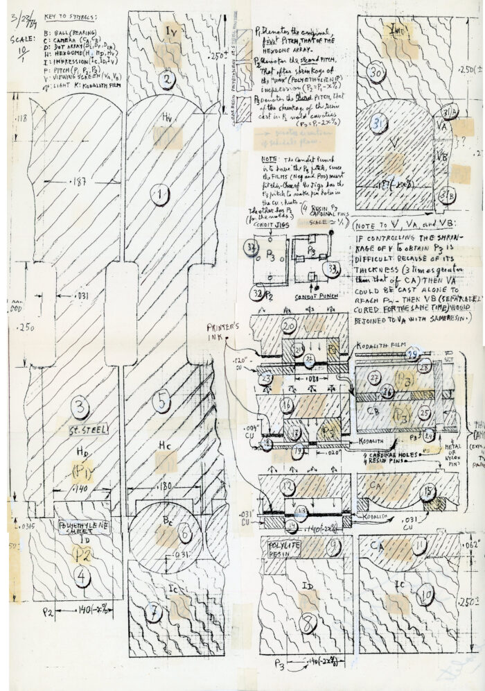 Large notated drawing dated March 23, 1984. 12.5″ x 17.5″.