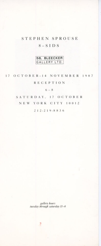 Card for Stephen Sprouse’s 8-Sids at 56 Bleeker Gallery, 1987.
