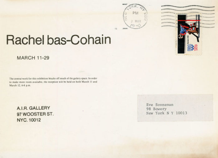 Rachel bas-Cohain, Card, A.I.R. Gallery, 1980