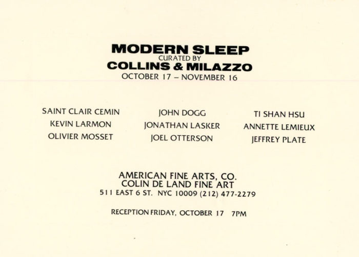 American Fine Arts, Collins & Milazzo, Modern Sleep, Card