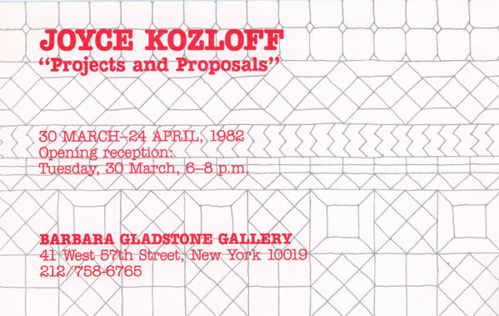 Barbara Gladstone Gallery, Joyce Kozloff, Projects and Proposals, Card, 1982