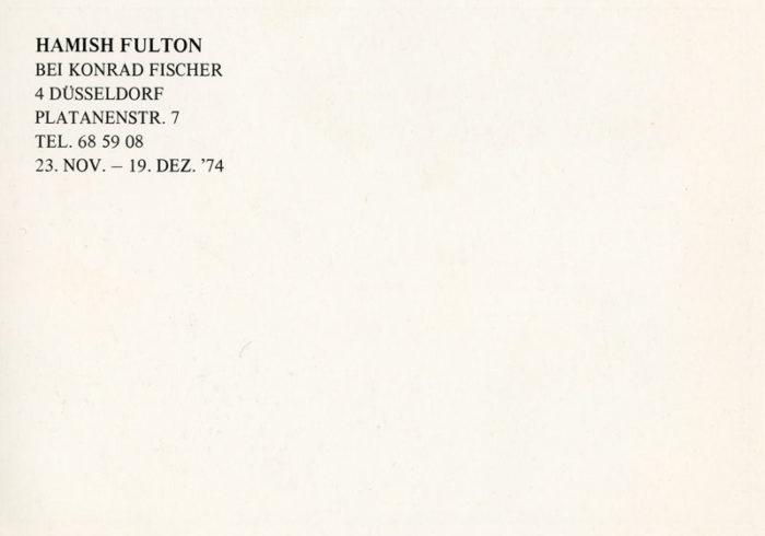 Postcard for hamish Fulton’s exhibition A Camping Place For One Night By Lake Huaypo Peru 1974, Konrad Fischer, Düsseldorf, 1974.