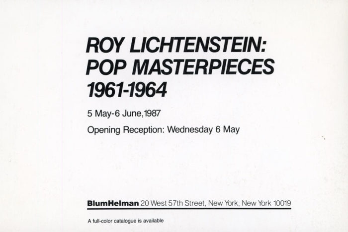 Card for Roy Lichtenstein’s Pop Masterpieces 1961-1964 at BlumHelman, 1987.