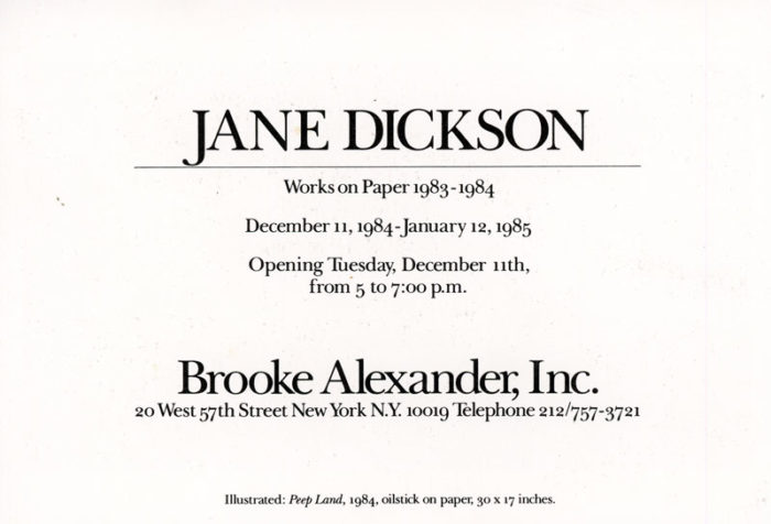 Card for Jane Dickson’s Works on Paper 1983-1984 at Brooke Alexander Inc, 1985