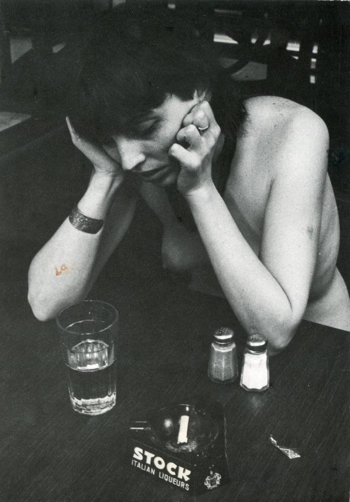 Postcard for Rudy Burckhardt’s Recent Photographic Works at Brooke Alexander, 1987. Front of the postcard features The Perrier Drinker, 1983.