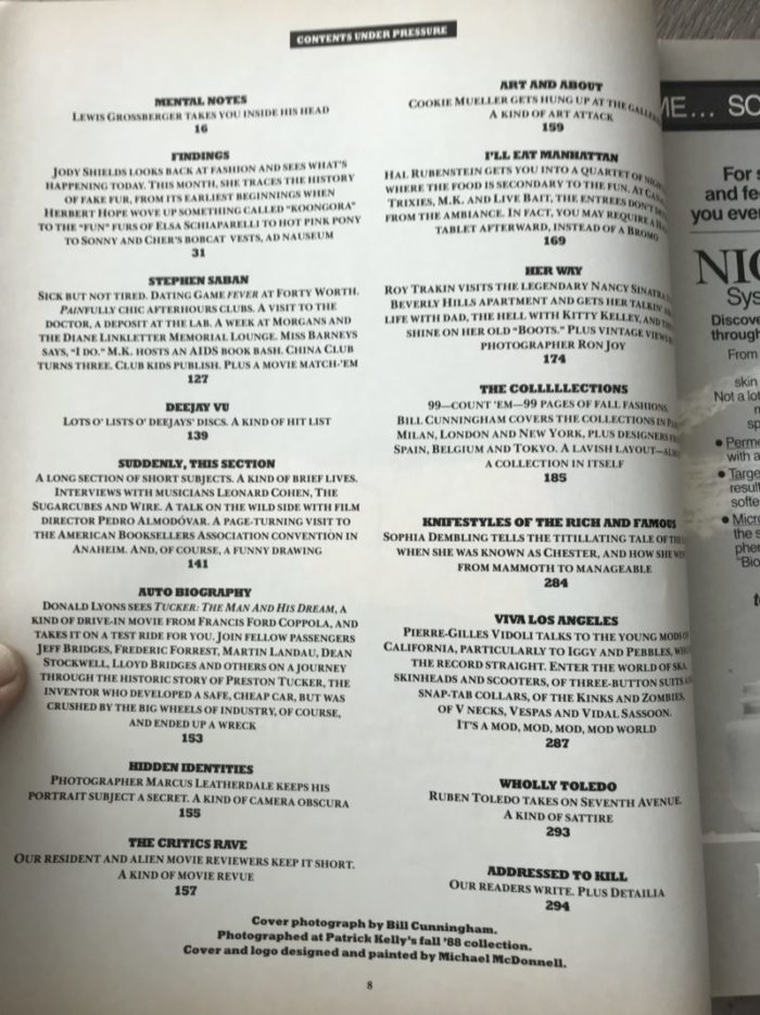 September issue of DETAILS Magazine, 1988. This issue includes a 99-page special of Bill Cunningham’s photography and reviews of the Fall collections, shot in Paris, New York, and London.