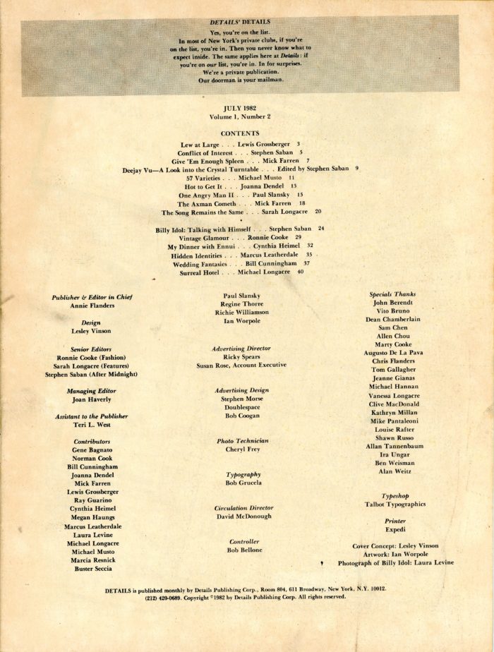 Volume I Number 2 of DETAILS Magazine, 1982