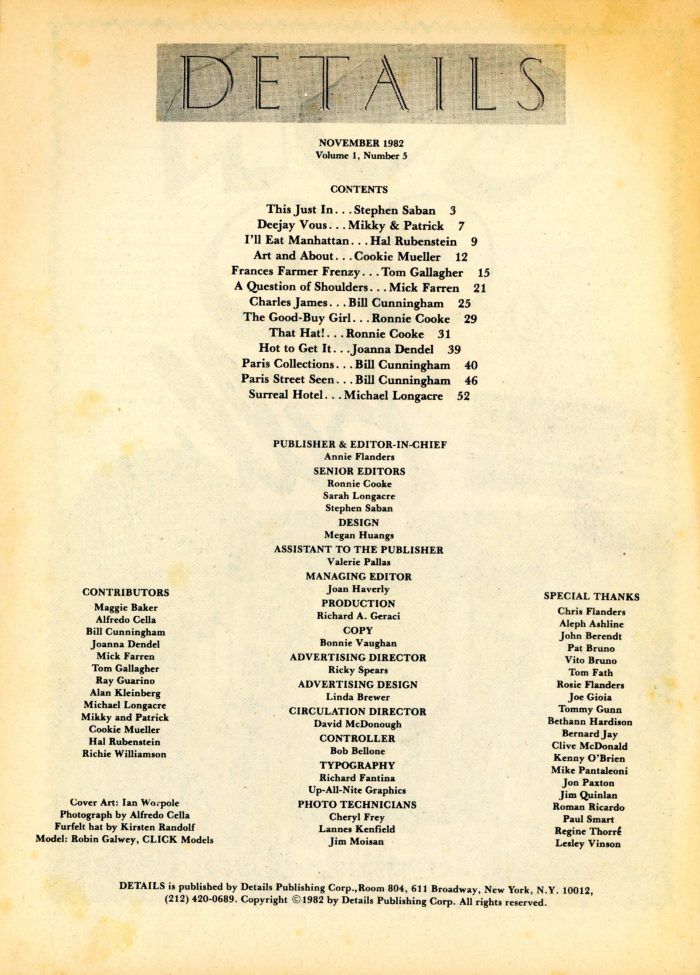 DETAILS Magazine, Vol. 1 No. 5, 1982, Bill Cunningham’s “Paris Collections”