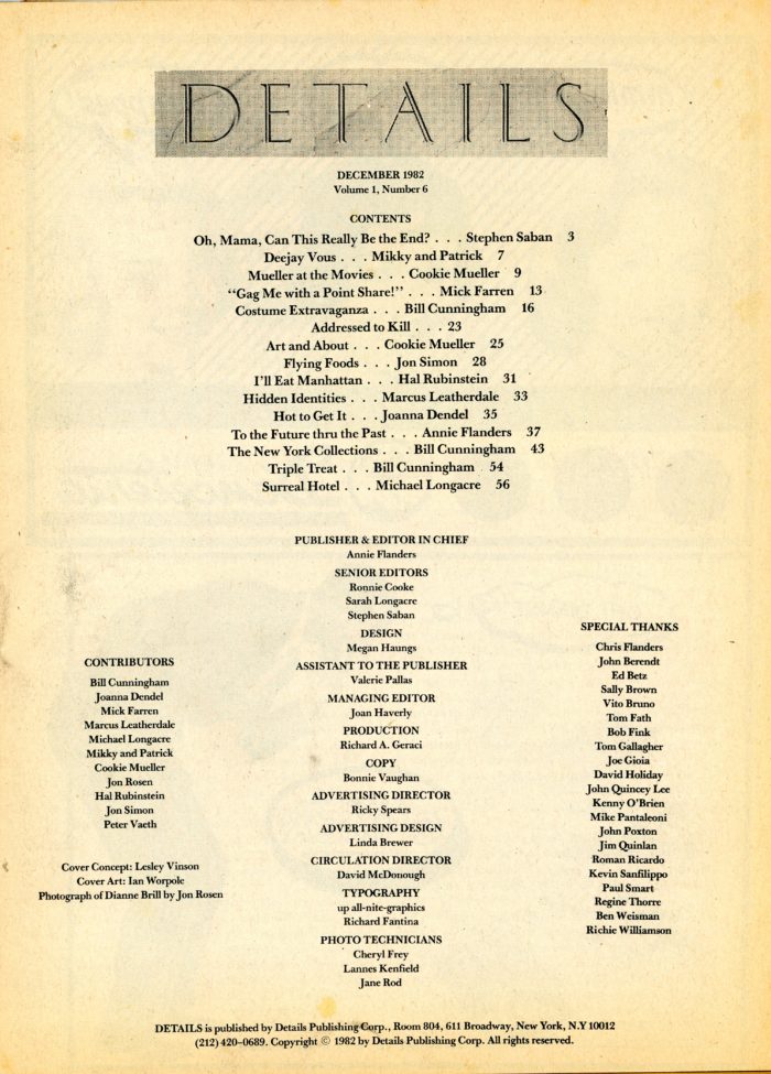 DETAILS Magazine, Vol. 1 No. 6, 1982, Bill Cunningham’s “The New York Collections”