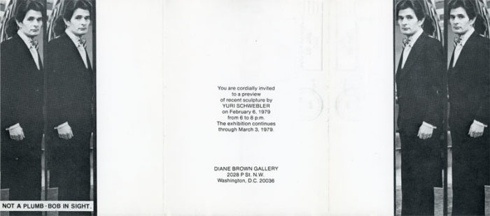 3-Fold card for an exhibition previewing Yuri Schwebler’s newest sculpture at Diane Brown Gallery, 1979.