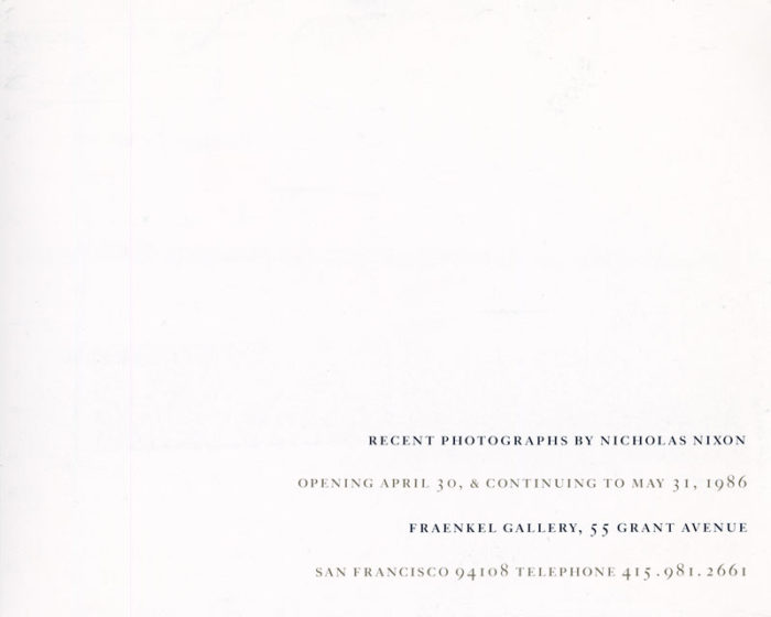 Nicholas Nixon, Recent Photographs, Folded Card, Fraenkel Gallery, 1986