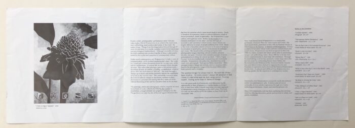 3-Fold exhibition brochure for David Wojnarowicz’s In The Garden at Intermedia Arts, Minnesota, 1991.
