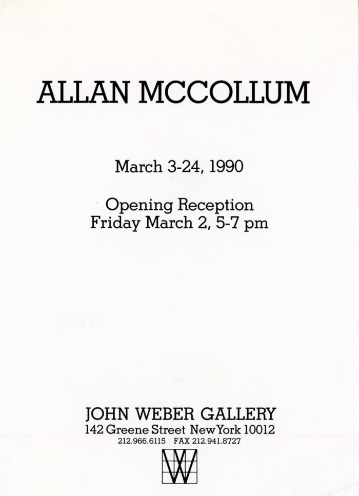Card for Allan McCollum’s exhibition at John Weber Gallery, 1990.