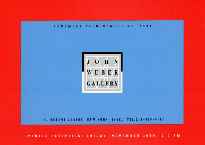 Card for Daniel Buren’s exhibition To Transform Situated Works at John Weber Gallery, 1991.