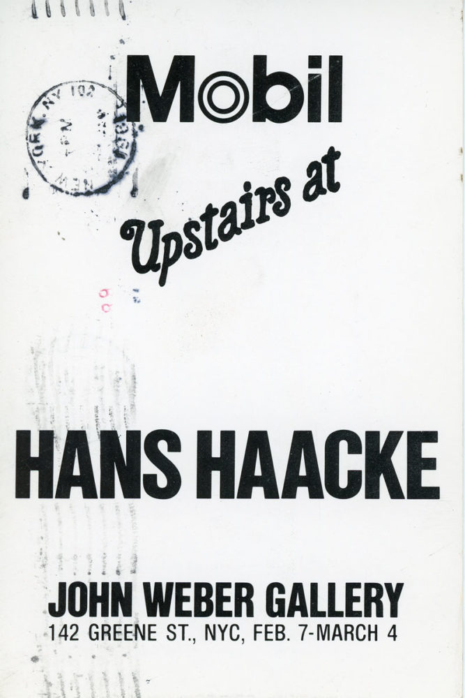 Postcard for Hans Haacke’s exhibition at John Weber Gallery, 1981.