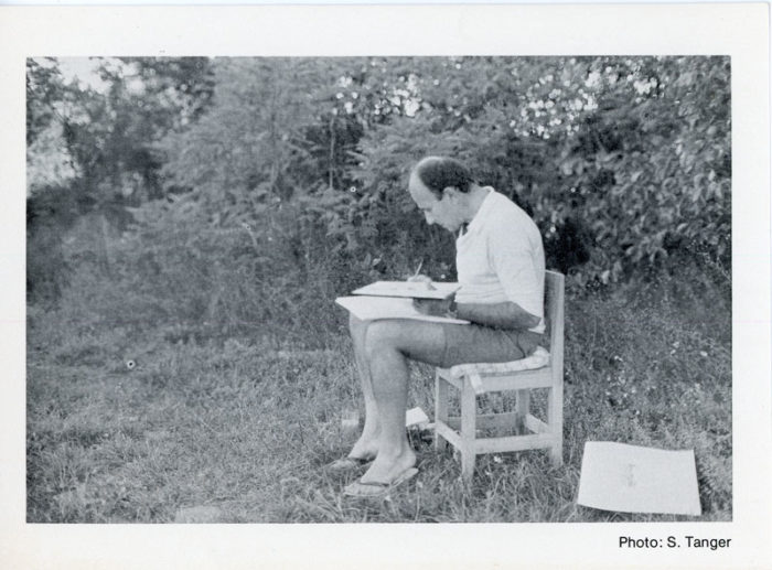 Card for Lucio Pozzi’s exhibition of Watercolors at John Weber Gallery, 1978. Photo of artist on from of card taken by S. Tanger.