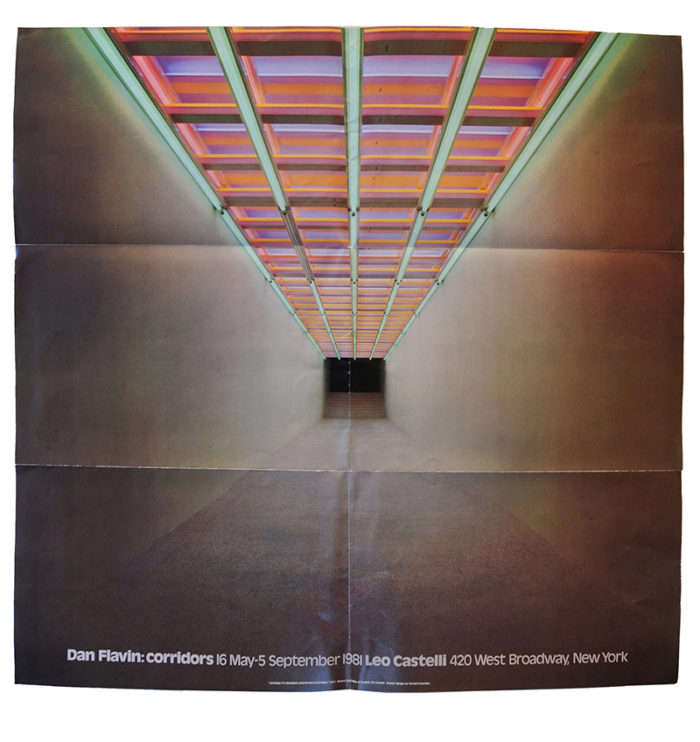 Folded poster for Dan Flavin’s Corridors exhibition at Leo Castelli Gallery, 1981.