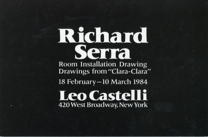 Leo Castelli Gallery, Richard Serra, Room Installation Drawing; Drawings from “Clara-Clara,” Card, 1984. Size: 5.75 x 9 inches.