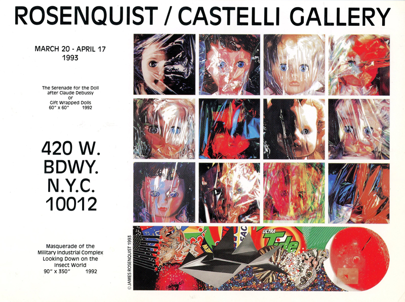 Tri-folded announcement card for an exhibition by James Rosenquist at Leo Castelli Gallery, April 20 – May 18, 1996.