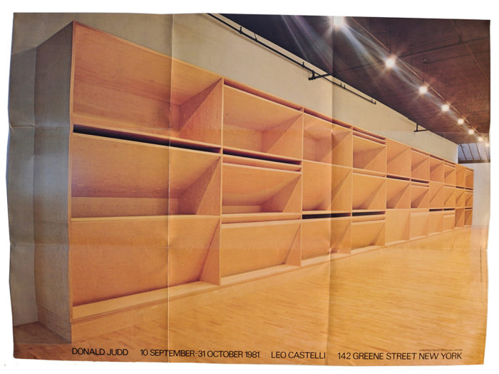 Folded poster for Donald Judd’s exhibition at Leo Castelli Gallery, 1981. Photo on poster by Glenn Steigelman.