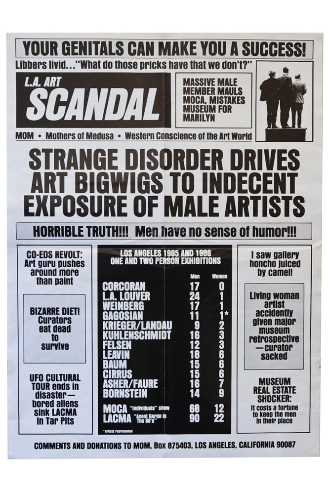 Folded offset poster by Mothers of Medusa (M.O.M.), Your Genitals Can Make You A Success, 1987. M.O.M. was a L.A.-based public intervention group, similar to the Guerrilla Girls.