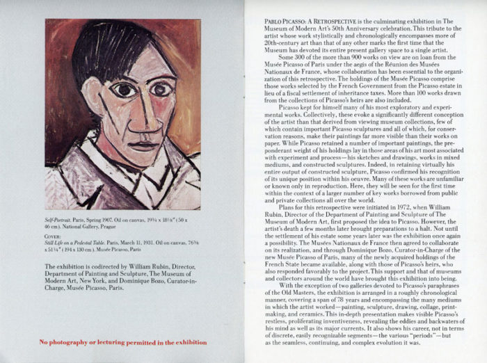 Pablo Picasso, A Retrospective, Exhibition Booklet, Museum of Modern Art, 1980