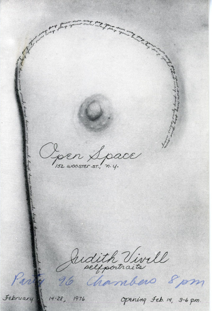 Card for Judith Vivell’s exhibition of Self Portraits at Open Space, 1976.
