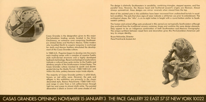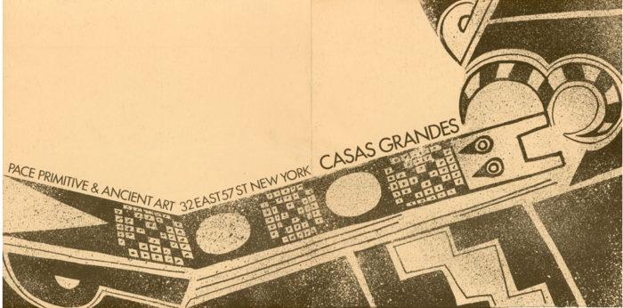 Folded card for Casas Grandes, an exhibition of Primitive and Ancient Art at Pace Gallery.