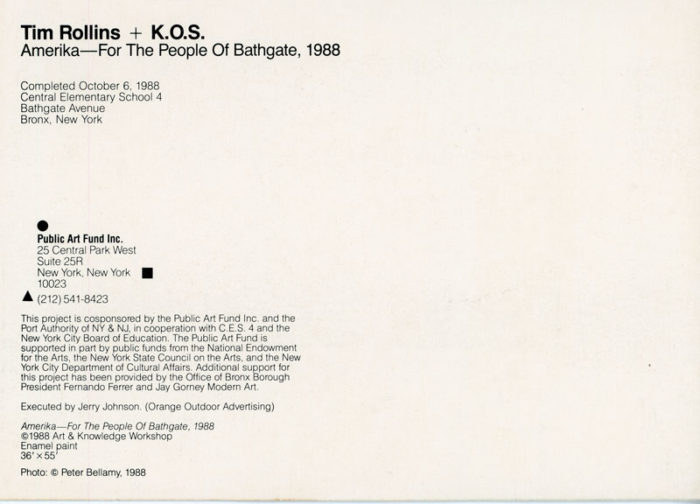 Public Art Fund, Tim Rollins + KOS, Amerika — For The People of Bathgate, Card, 1988