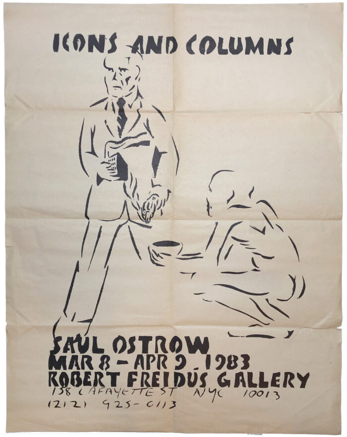 Poster for Saul Ostrow’s “Icons and Columns” at Robert Freidus Gallery, March 8 – April 9, 1983.