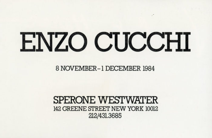 Announcement card for Enzo Cucchi’s exhibition at Sperone Westwater Gallery, 1984.