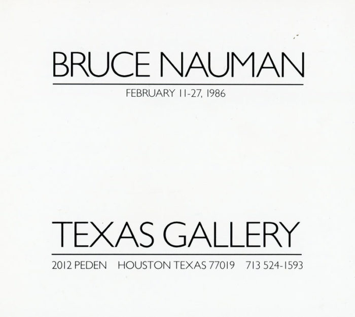 Folded card for Bruce Nauman exhibition at the Texas Gallery, 1985.
