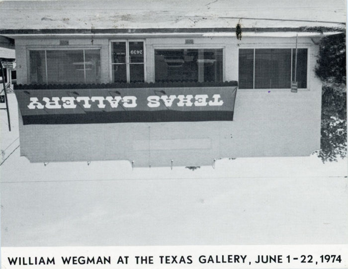 Card for William Wegman’s exhibition at Texas Gallery, 1974.