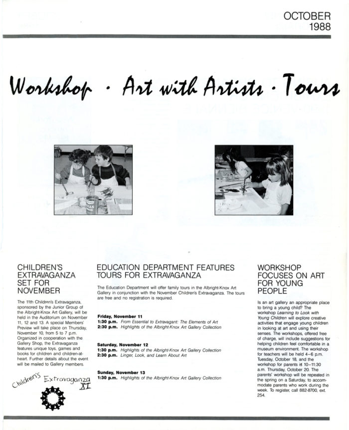 Albright-Knox Gallery, page from October issue, 1988, announcing Jenny Holzer exhibition for the Venice Biennale in 1990.