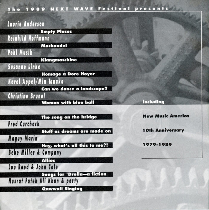 Laurie Anderson, John Cale, Lou Reed, Next Wave, Brooklyn Academy of Music, Catalogue, 1989