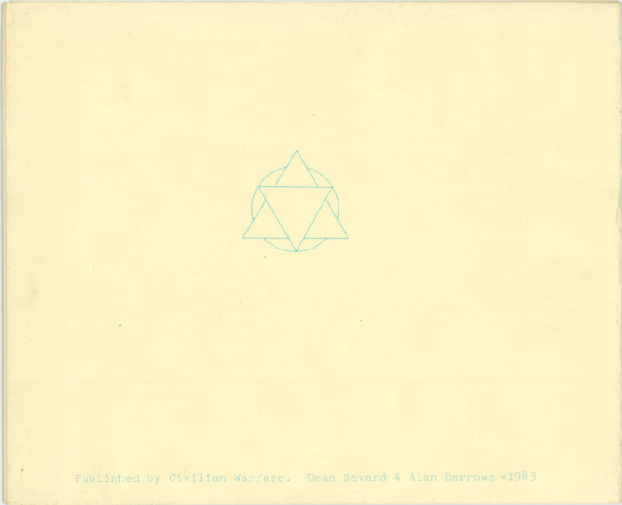 Five double-sided offset prints housed in a cardstock portfolio, published on the occasion of an exhibition by Greer Lankton at Civilian Warfare, May 7-27, 1983.