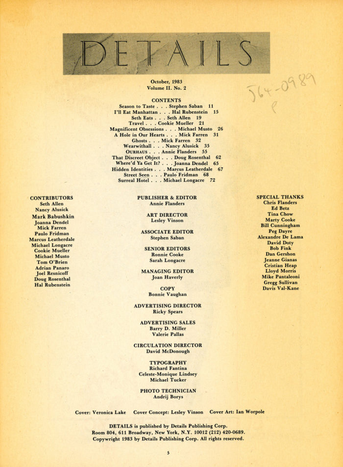 Details Magazine, Vol. 2 No 2, 1983/10 (October)