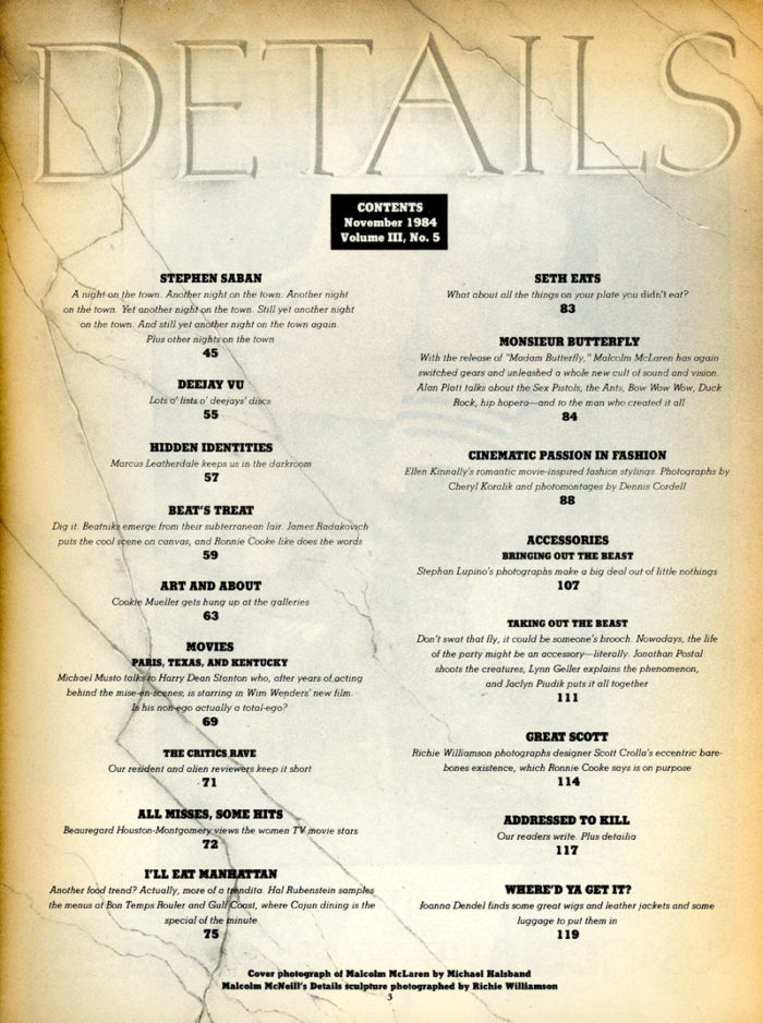 Details Magazine, Vol. 3 No. 5, 1984/11 (November), Malcolm McLaren, Michael Halsbland