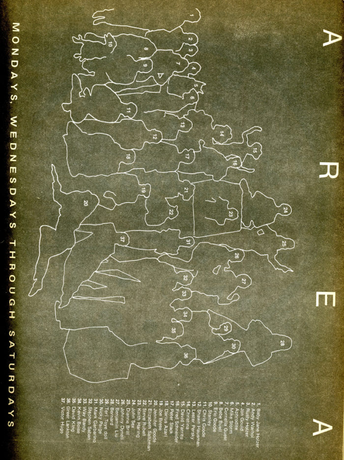 This AREA ad contains the key identifying the the people in the group portrait for the AREA ad in Details Vol. 3 No. 4
