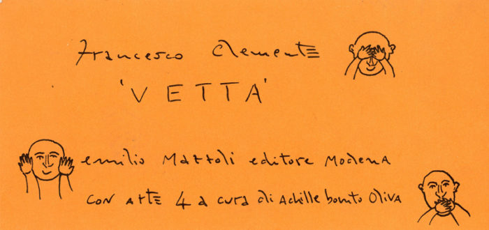 Francesco Clemente, Vetta, Card for Book Party, Fabjbasaglia Galleria (Italy), 1979