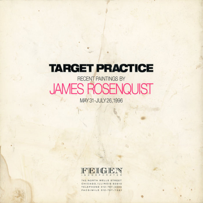 Catalogue for James Rosenquist’s exhibition “Target Practice” at Feigen Incorporated, Chicago, May 31 – July 26, 1996.